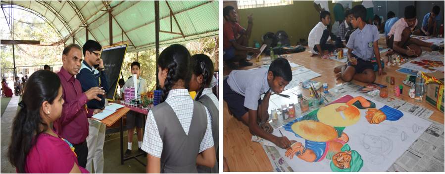 The Elocution competition was judged by Mr J.K Gaonkar , Mr Anthony Barreto and Mr VasaloCarvalho.Science project competition was judged by Dr.SantoshVernekar, Miss ShachiLolyekar and Mr PrashantKholkar.Skit Competition was judged by Dr.CajyD’silva , Mr SharendraNaik and Mr Nanda Satarkar.Group singing competition was judged by Mrs UrmilaLolyekar, Mrs Swati Naik andMrs. Elvira Fernandes.Cloth painting competition was judged by Mr. Manoj Prabhugaonkar, Mr AnketMhalshi, Mr.LaxmanPrabhugaonkar and Mrs RehanaFondekar.